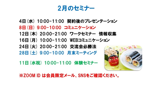 無料体験セミナー 2月11日(水祝) 10:00-11:00 心豊かなセールスを!